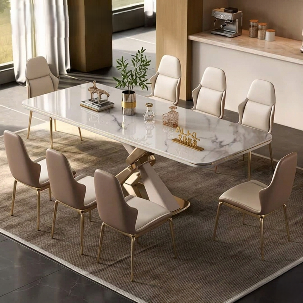 Với biệt thự, nhà phố lớn hoặc penthouse, bộ bàn ăn cao cấp là điểm nhấn thể hiện gu thẩm mỹ và đẳng cấp gia chủ.