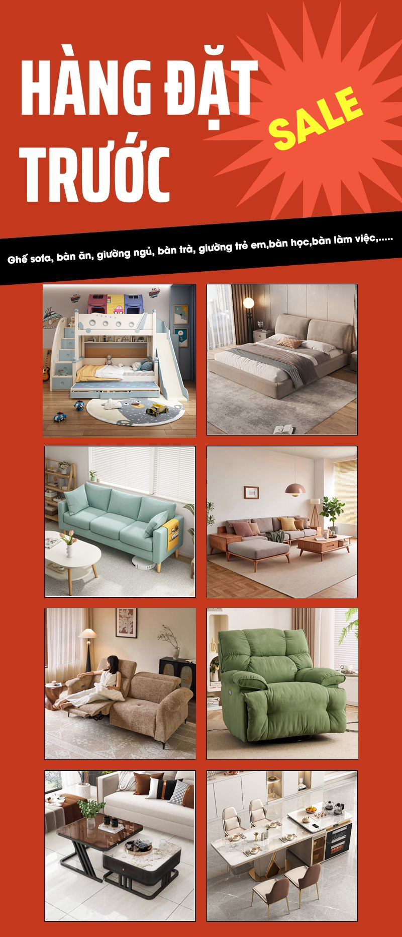 Xưởng nhận đóng theo yêu cầu của quý khách tất cả nội thất gia đình, phòng họp cơ quan, phòng bếp, bệnh viện, trường học…..Quý khách vui lòng liên hệ trực tiếp với chúng tôi để trao đổi mẫu sản phẩm và các yêu cầu cụ thể.Chúng tôi sẽ phản hồi sớm nhất lại cho bạn