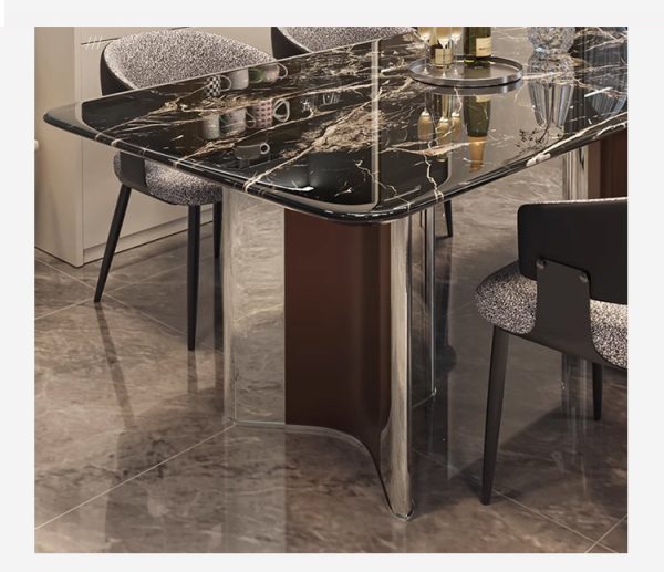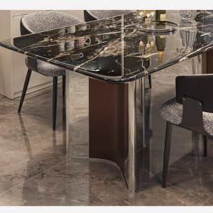 Phần chân bàn được làm từ thép không gỉ cao cấp, gia công tỉ mỉ để đạt độ bền và ổn định cao nhất. Kiểu dáng thanh thoát nhưng chắc chắn, tạo nên sự cân bằng hoàn hảo giữa tính thẩm mỹ và công năng. Mỗi chi tiết đều được tinh chỉnh kỹ lưỡng, thể hiện rõ phong cách đương đại chuẩn Ý.