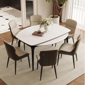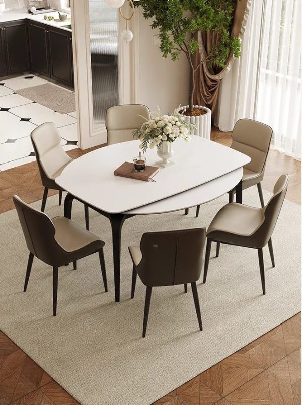 Điểm nhấn nổi bật của bộ bàn Erica Việt Nam chính là thiết kế mặt bàn có thể thu gọn hoặc mở rộng dễ dàng. Cơ chế trượt mượt mà giúp bạn nhanh chóng biến đổi kích thước bàn, thích hợp cho cả những bữa ăn ấm cúng hàng ngày lẫn những buổi tiệc sum vầy đông đủ. Đây chính là giải pháp tối ưu cho các không gian sống hiện đại, nơi tiện ích và thẩm mỹ cùng song hành.