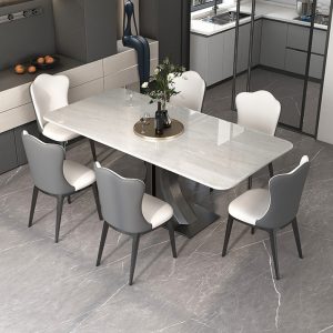 Bàn sử dụng mặt đá phiến nhập khẩu, nổi bật với khả năng chống trầy xước, chống thấm, chịu nhiệt tốt và đặc biệt là dễ vệ sinh, giúp giữ cho bàn luôn sáng bóng như mới theo thời gian. Bề mặt đá mang đến cảm giác sang trọng, đẳng cấp và tinh tế – một lựa chọn hoàn hảo cho những ai yêu thích sự bền đẹp và tinh tế trong từng chi tiết.
