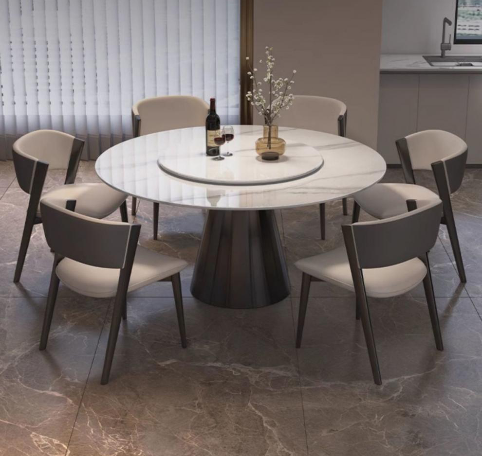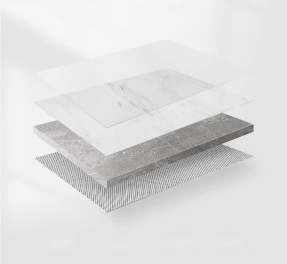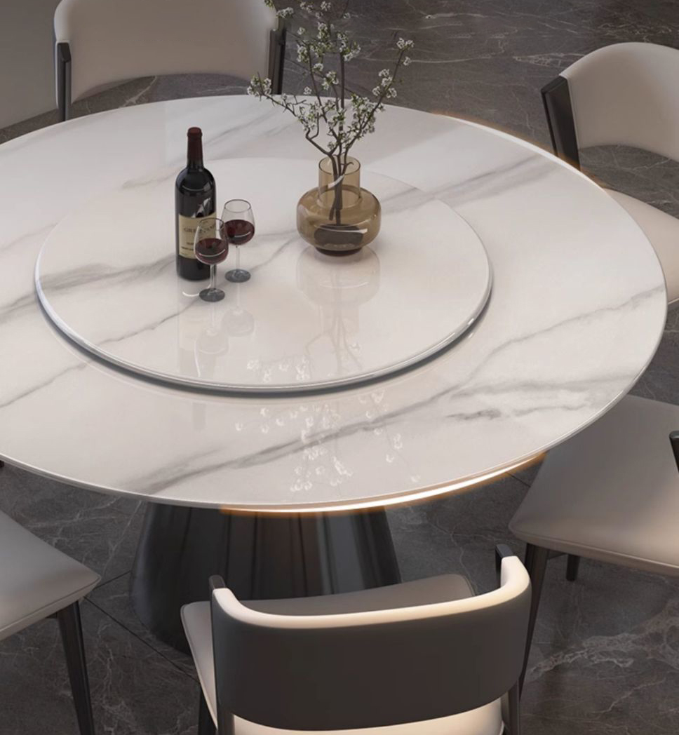 Mặt bàn được chế tác từ phiến đá thế hệ mới, mang độ bóng mịn hoàn hảo và kết cấu trong suốt tinh tế. Bề mặt được đánh bóng tỉ mỉ, khi chạm vào mang lại cảm giác trơn láng và sang trọng. Dưới ánh sáng tự nhiên hay ánh đèn nhân tạo, mặt bàn vẫn toát lên sự lấp lánh và cuốn hút, nâng tầm thẩm mỹ cho toàn bộ không gian phòng ăn.