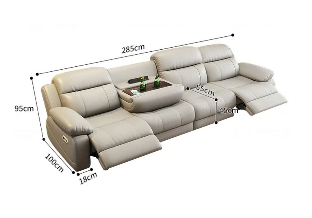 Sofa được ứng dụng cơ chế ngả trượt thông minh, cho phép phần thân ghế tự động trượt về phía trước khi ngả, giúp không cần chừa khoảng cách với tường. Giải pháp “0 cm dựa tường” này vừa tiết kiệm diện tích, vừa giữ cho không gian phòng khách gọn gàng, tinh tế – lý tưởng cho căn hộ hiện đại có diện tích giới hạn.