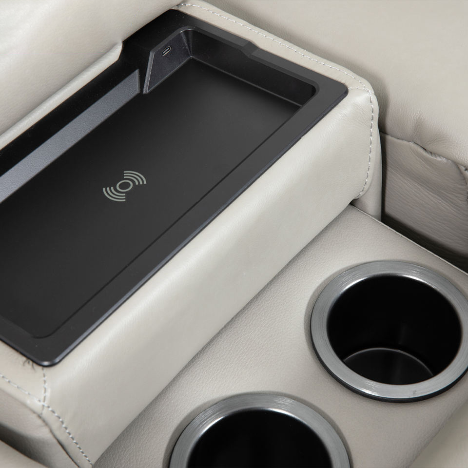 Không chỉ dừng lại ở sự thoải mái, ghế sofa nằm còn tích hợp bộ sạc không dây tiên tiến ngay trên bề mặt hộc trung tâm. Giúp bạn dễ dàng sạc điện thoại chỉ bằng cách đặt lên, loại bỏ hoàn toàn sự vướng víu của dây sạc truyền thống