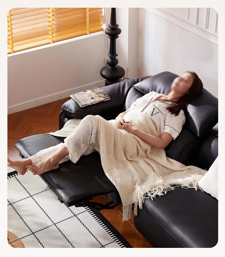 Điểm nhấn nổi bật của sofa chính là hệ thống điều chỉnh nâng chân bằng điện, được tích hợp bảng điều khiển bên hông ghế. Chỉ với một nút chạm, người dùng có thể dễ dàng điều chỉnh tư thế ngồi, ngả lưng hay duỗi chân theo ý muốn. Động cơ nhập khẩu vận hành êm ái, bền bỉ và không gây tiếng ồn – mang lại trải nghiệm thư giãn hoàn hảo từ “ghế ngồi” đến “ghế nằm”.