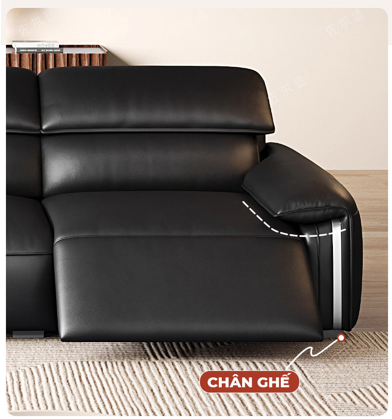 Điểm nhấn nổi bật của sofa chính là hệ thống điều chỉnh nâng chân bằng điện, được tích hợp bảng điều khiển bên hông ghế. Chỉ với một nút chạm, người dùng có thể dễ dàng điều chỉnh tư thế ngồi, ngả lưng hay duỗi chân theo ý muốn. Động cơ nhập khẩu vận hành êm ái, bền bỉ và không gây tiếng ồn – mang lại trải nghiệm thư giãn hoàn hảo từ “ghế ngồi” đến “ghế nằm”.