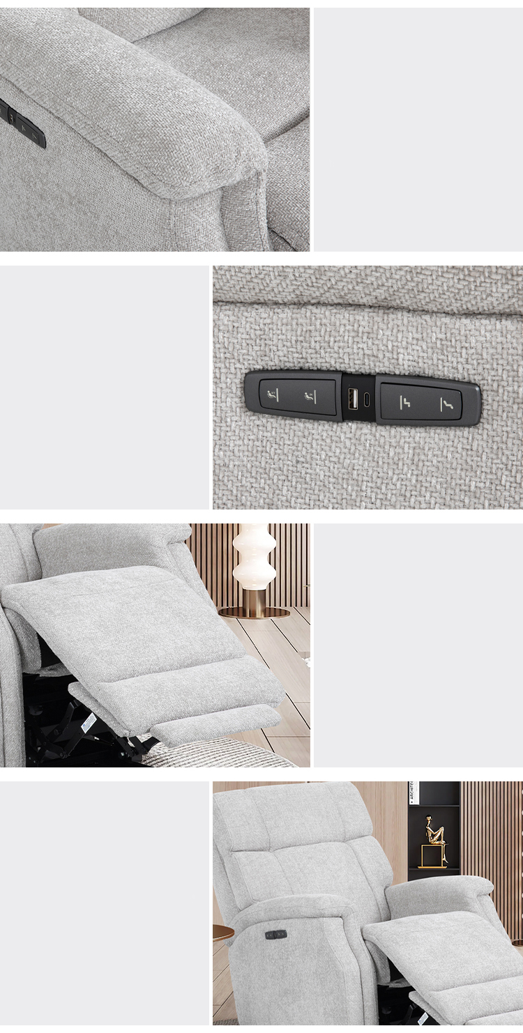 - Bảng điều khiển được tích hợp gọn gàng bên hông ghế, cho phép người dùng dễ dàng điều chỉnh góc ngả lưng hoặc nâng chân chỉ bằng một chạm. Hệ thống motor điện vận hành êm ái, giúp chuyển động mượt mà, mang đến trải nghiệm thư giãn hoàn hảo.