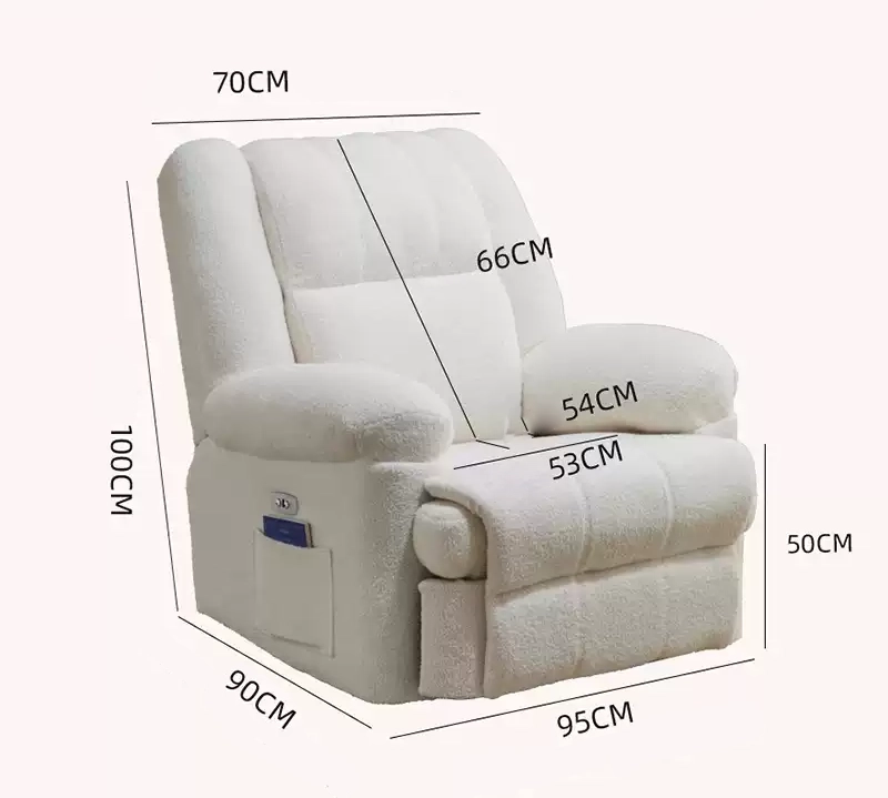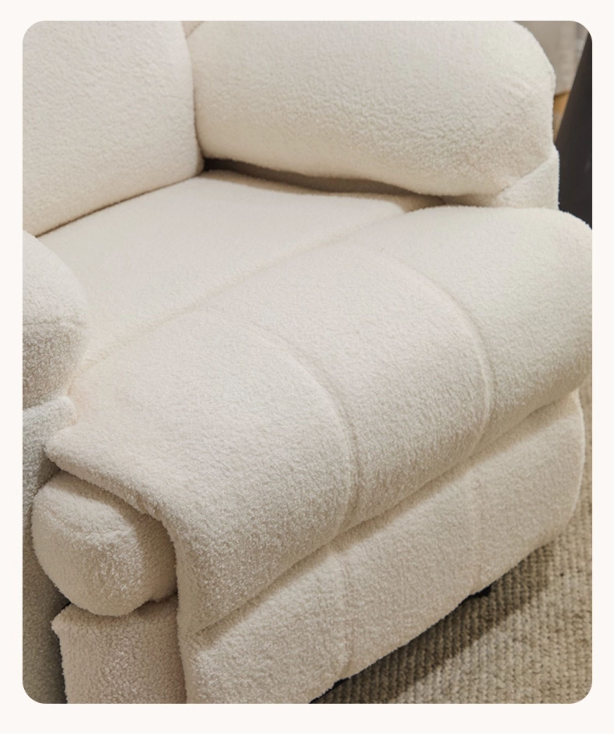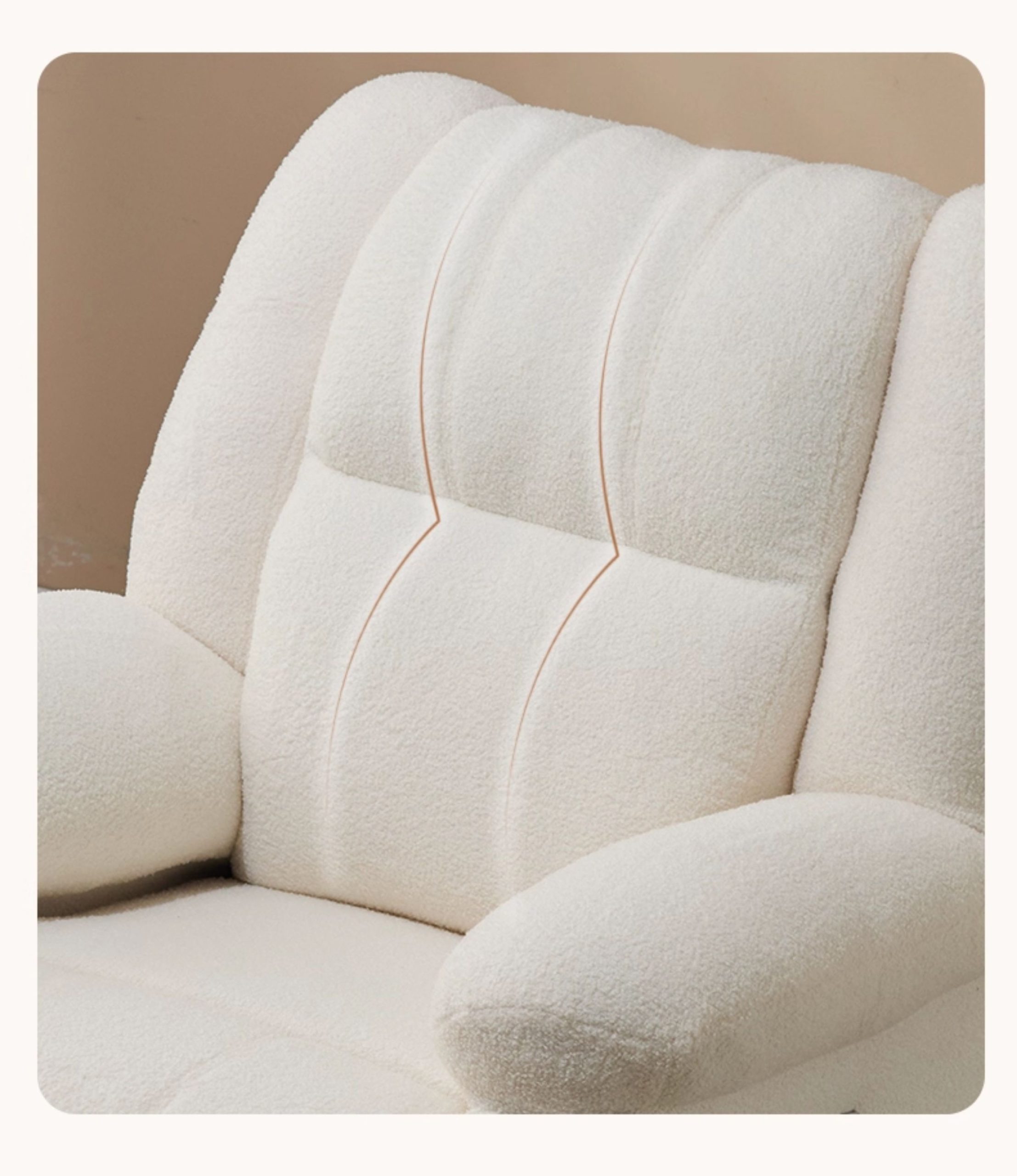 - Bề mặt ghế được bọc bằng vải lông cừu cao cấp, mềm mại và thoáng khí.