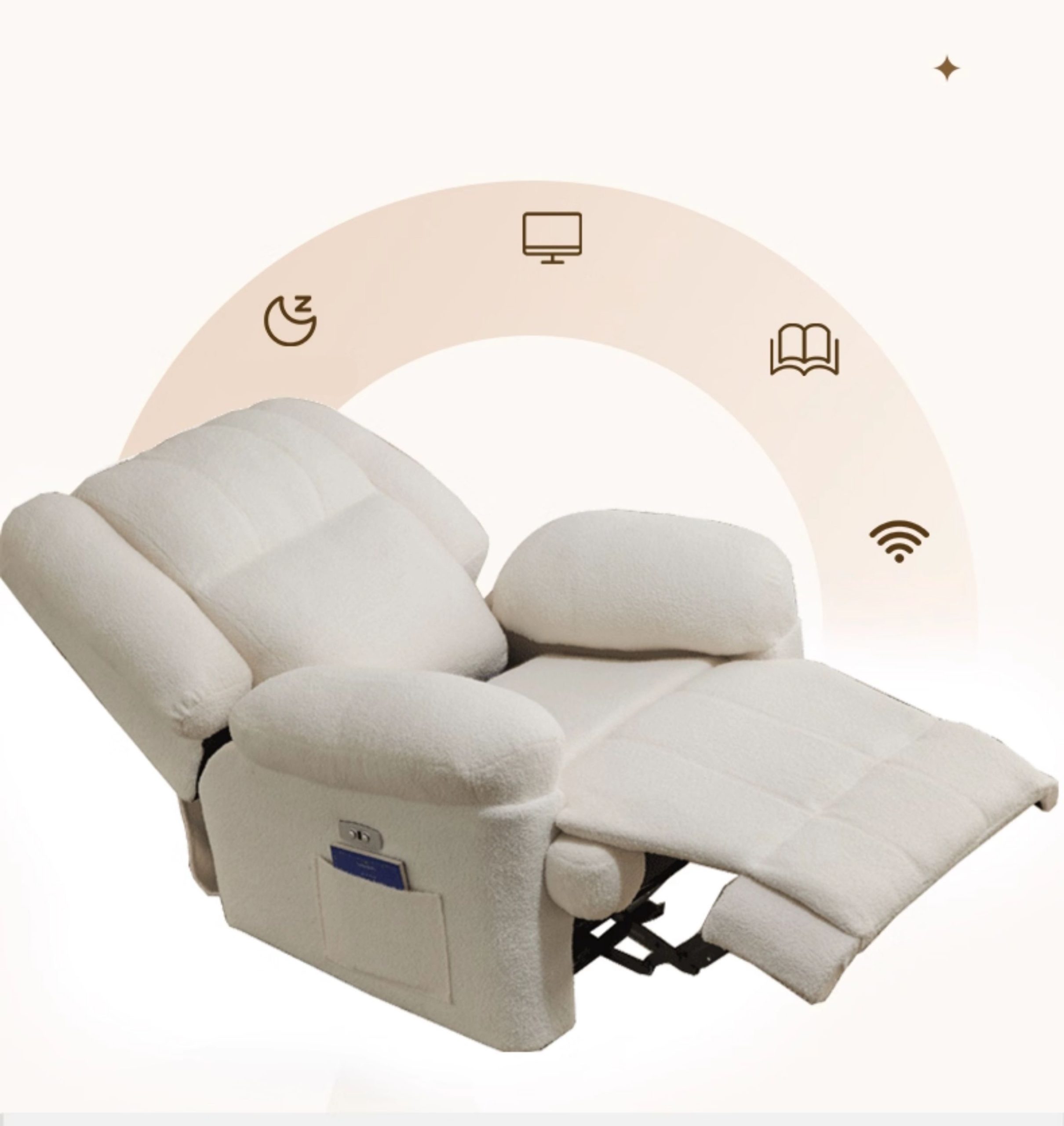 - Ngoài ra, ghế còn có túi zip bên hông – nơi lý tưởng để cất giữ sách, điều khiển hoặc điện thoại, giúp không gian luôn gọn gàng.