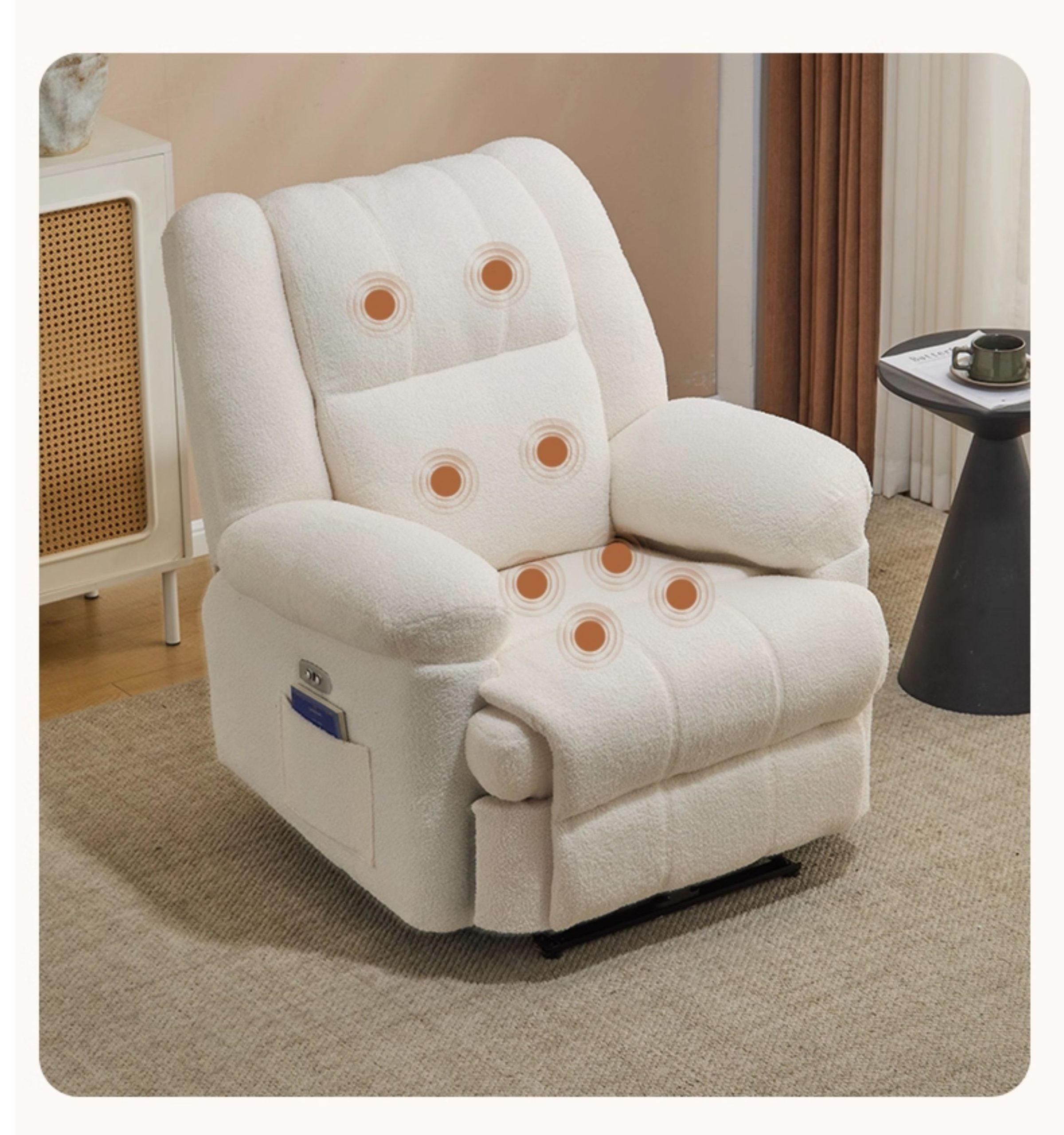 Công nghệ massage 8 điểm thông minh được tích hợp khéo léo giúp giảm căng thẳng và xua tan mệt mỏi sau một ngày dài. Bạn có thể tùy chỉnh chế độ massage qua điều khiển cầm tay, lựa chọn vùng và cường độ phù hợp cho cơ thể, mang lại cảm giác thư giãn chuyên nghiệp như tại spa.