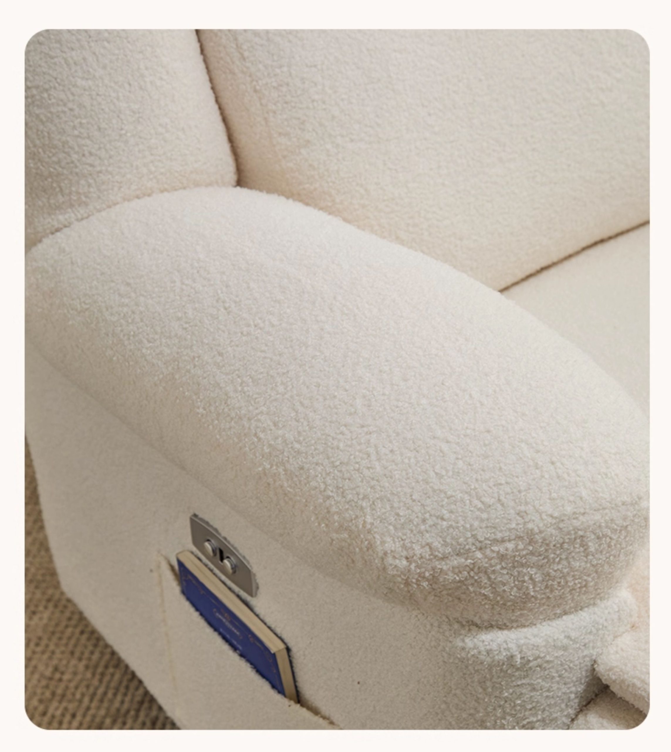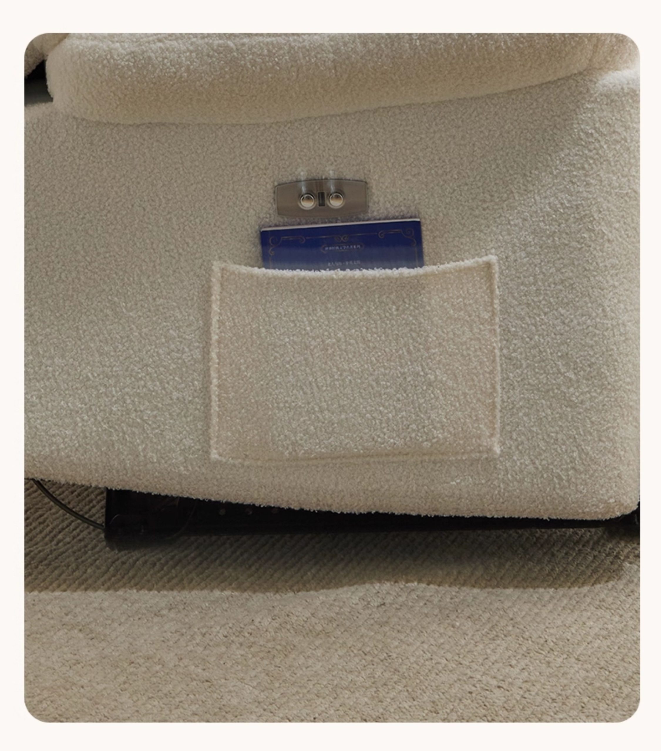 - Bề mặt ghế được bọc bằng vải lông cừu cao cấp, mềm mại và thoáng khí.
