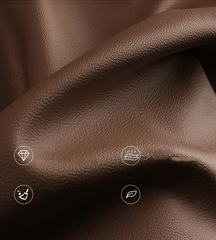 - Phần vỏ bọc là vải da tổng hợp cao cấp, mang lại cảm giác êm ái, mịn màng và dễ dàng vệ sinh.