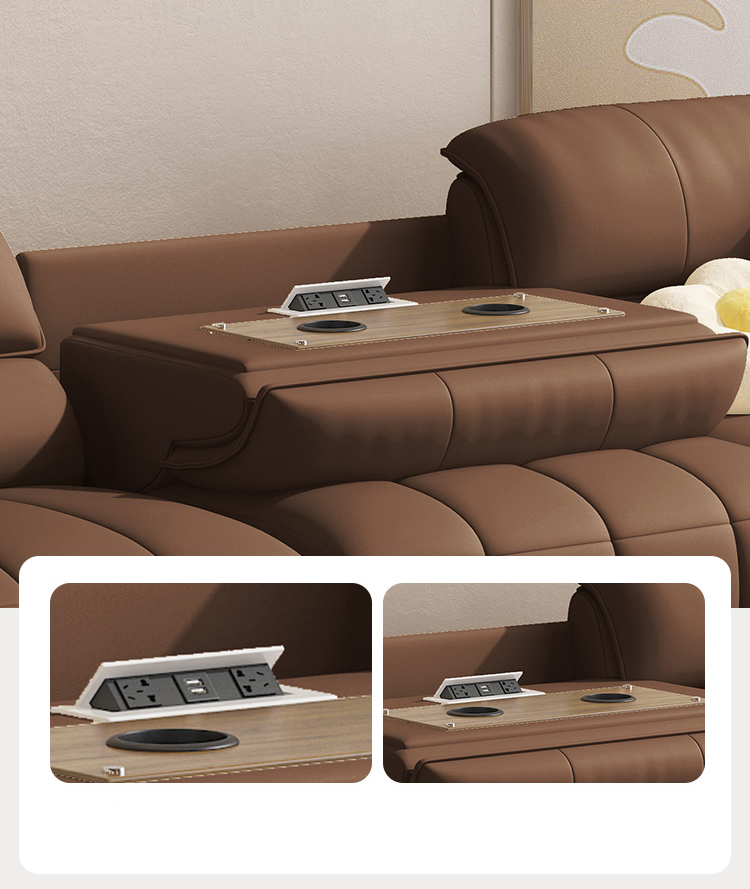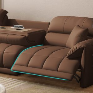 - Tựa lưng giữa có thể gập nhẹ, biến phần giữa của ghế thành bàn cà phê mini tích hợp hộc để cốc tiện dụng và ổ cắm điện đa năng – giúp bạn vừa thưởng thức đồ uống vừa sạc điện thoại, laptop hay thiết bị cá nhân.