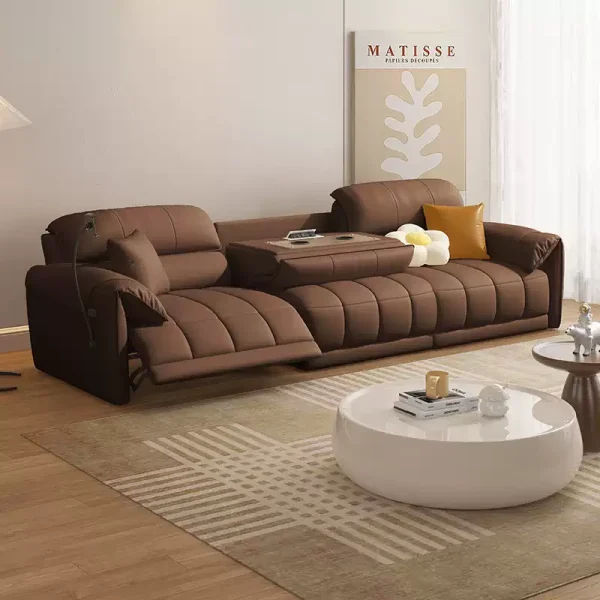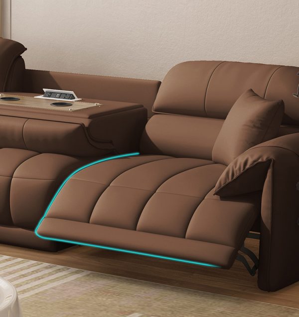 - Tựa lưng giữa có thể gập nhẹ, biến phần giữa của ghế thành bàn cà phê mini tích hợp hộc để cốc tiện dụng và ổ cắm điện đa năng – giúp bạn vừa thưởng thức đồ uống vừa sạc điện thoại, laptop hay thiết bị cá nhân.