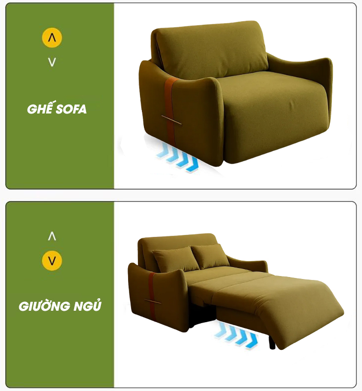 | Cơ chế hoạt động | Chuyển đổi sofa ngồi thành giường nằm bằng điều khiển cầm tay |
