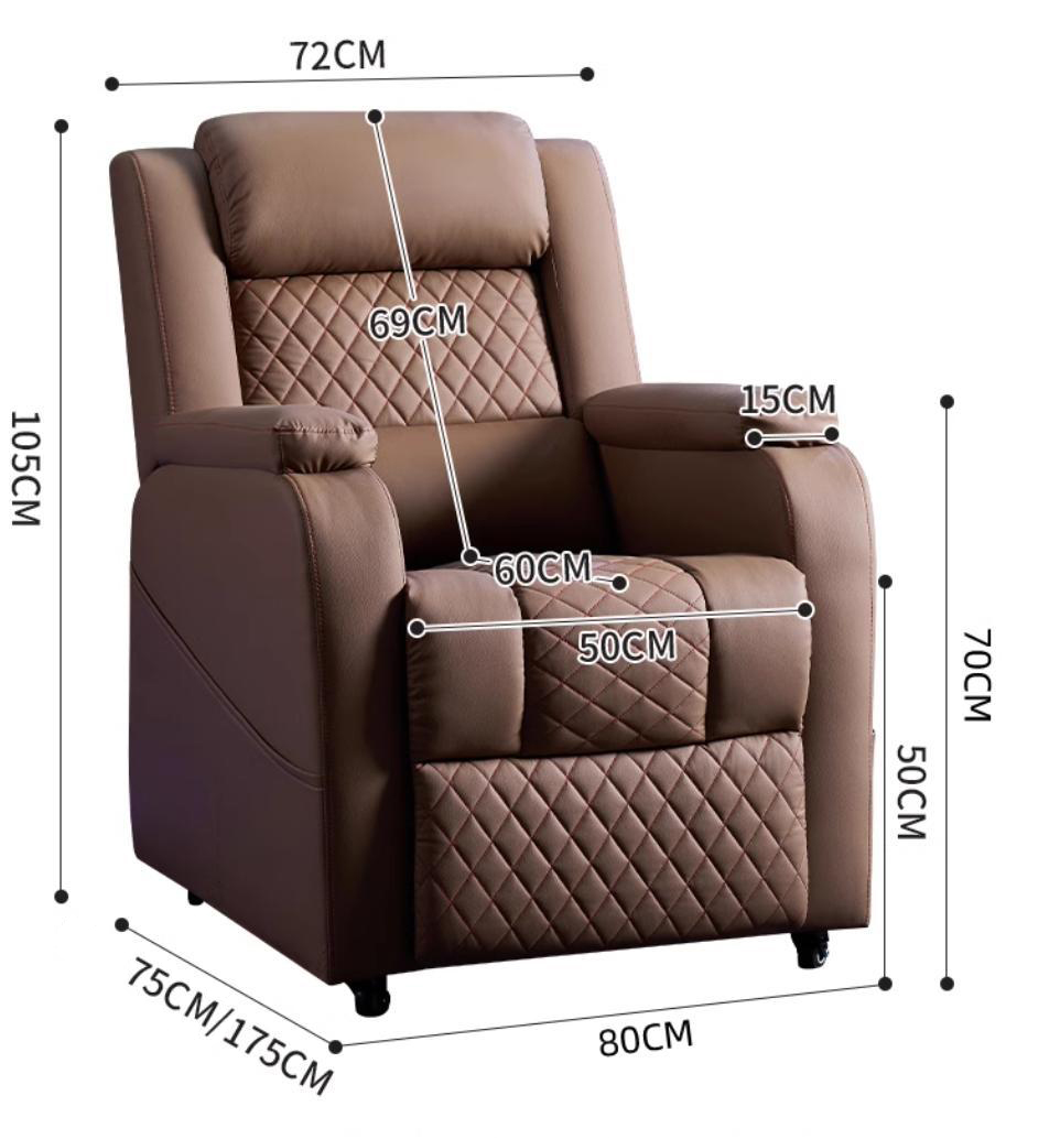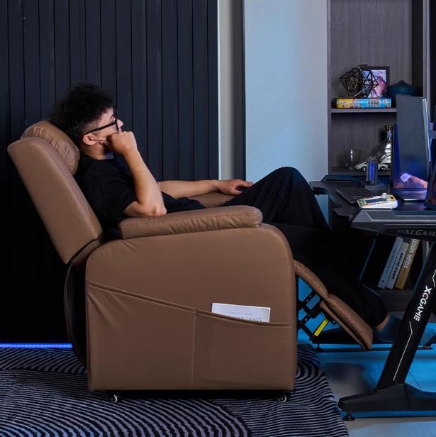 Bên hông ghế có ngăn túi zip để tạp chí, sách hoặc điều khiển TV, mang lại sự gọn gàng và tiện lợi. Mọi chi tiết đều được tối ưu hóa để đáp ứng nhu cầu thư giãn, giải trí và làm việc tại nhà, giúp bạn tận hưởng trọn vẹn cảm giác “ngồi là muốn nghỉ – ngả là muốn ngủ”.