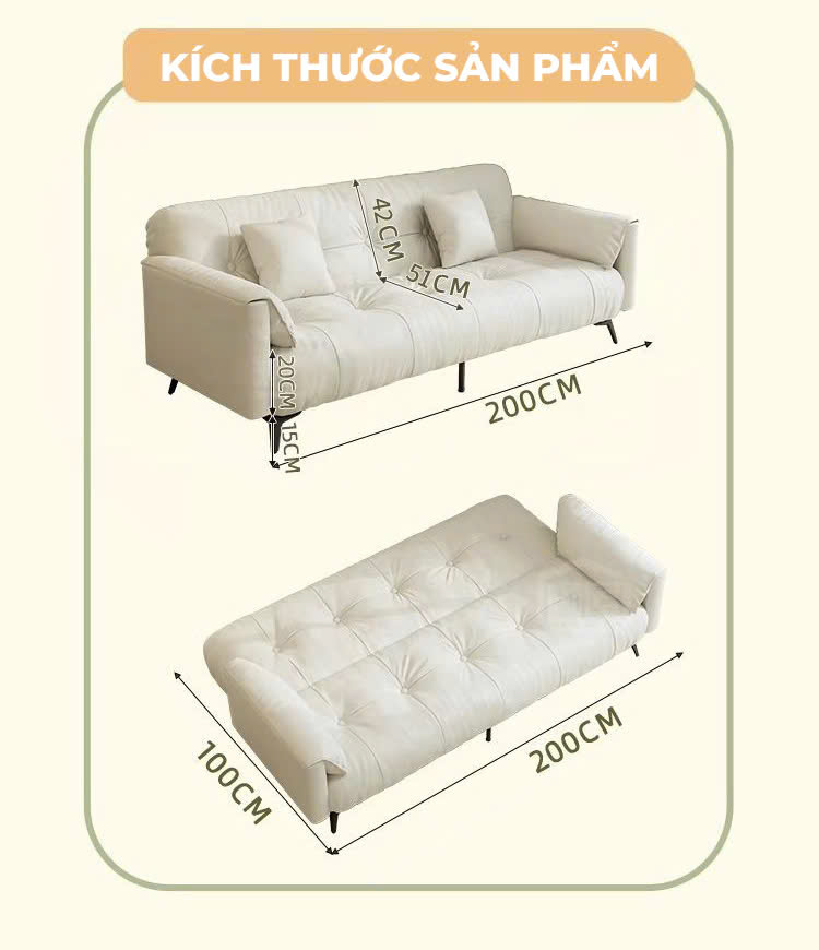 Chỉ với vài thao tác nhẹ, ghế giường có thể nhanh chóng chuyển đổi từ sofa tiếp khách thành sofa ngả lưng thư giãn cũng như giường ngủ tiện nghi. Cấu trúc gấp mở thông minh giúp tiết kiệm không gian hiệu quả, đồng thời mang đến sự thuận tiện tối đa cho những căn hộ hiện đại, nơi mỗi mét vuông đều được tính toán kỹ lưỡng.