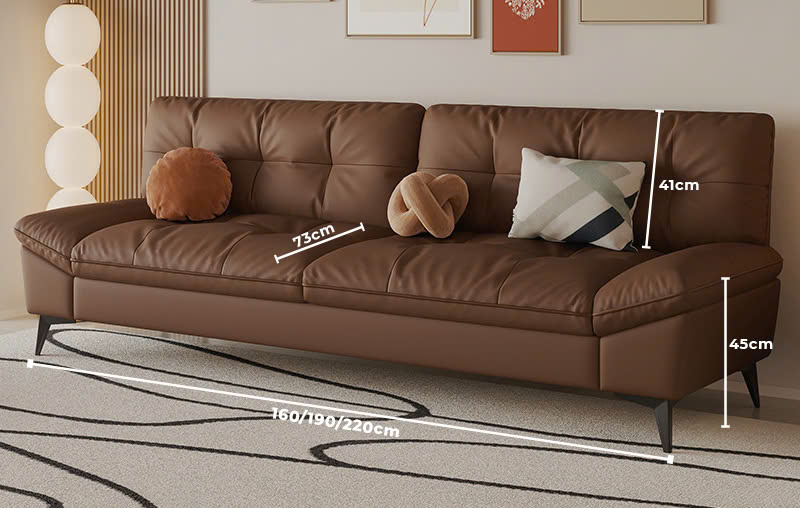 Vải bọc ghế sofa là vải công nghệ chất lượng cao, mang đến cảm giác mềm mại, mịn màng khi tiếp xúc, đồng thời dễ dàng vệ sinh, chống thấm, chống cào rách/kéo sợi và bền màu theo thời gian. Màu nâu trầm ấm không chỉ dễ phối hợp với các phong cách nội thất mà còn tạo cảm giác ấm cúng, gần gũi cho không gian bày trí.