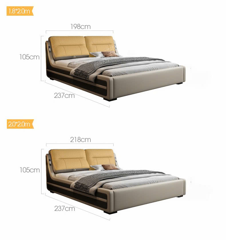 - Lớp bọc sang trọng: Tùy phiên bản, giường có thể bọc da hoặc vải cao cấp, mang lại cảm giác mềm mại, êm ái khi chạm vào. Lớp bọc này còn giúp việc vệ sinh dễ dàng, giữ cho giường luôn như mới.