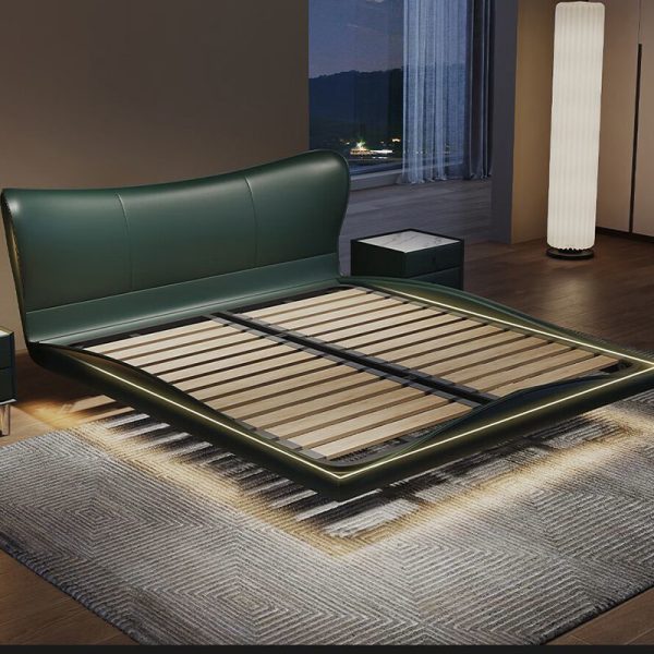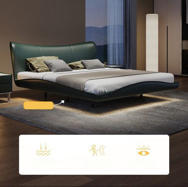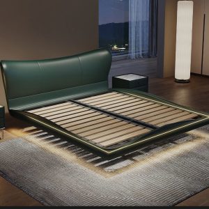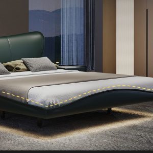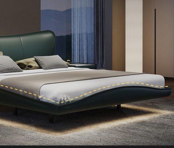 Điểm nhấn độc đáo của sản phẩm là hệ thống đèn LED được lắp đặt dọc theo thân giường, kết hợp với cảm biến tự động. Ánh sáng dịu nhẹ không chỉ mang đến cảm giác ấm áp, thư giãn mà còn tạo hiệu ứng thẩm mỹ ấn tượng, giúp phòng ngủ trở nên hiện đại và đầy phong cách.