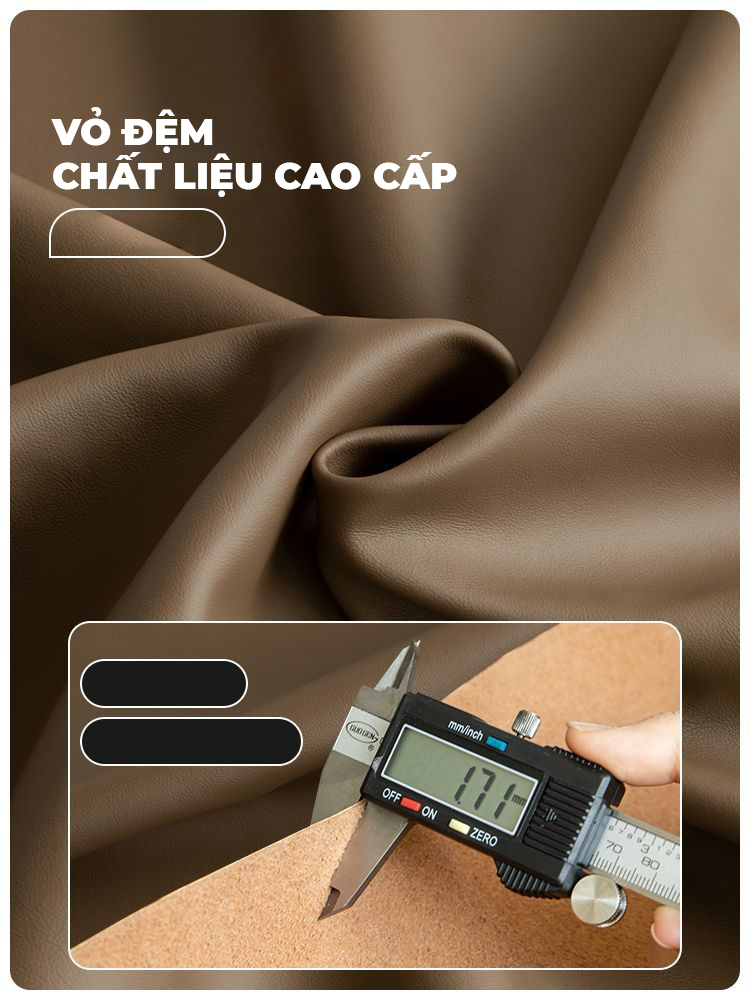 Toàn bộ bề mặt giường ngủ này được bọc bằng da bò thật mềm mịn, mang đến cảm giác êm ái, thoáng khí và bền bỉ theo thời gian. Đây là chất liệu cao cấp, không chỉ đẹp mắt mà còn dễ dàng vệ sinh, giúp giường luôn giữ được vẻ tinh tế như mới.