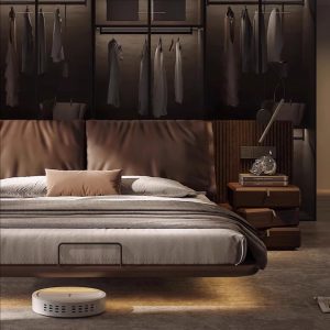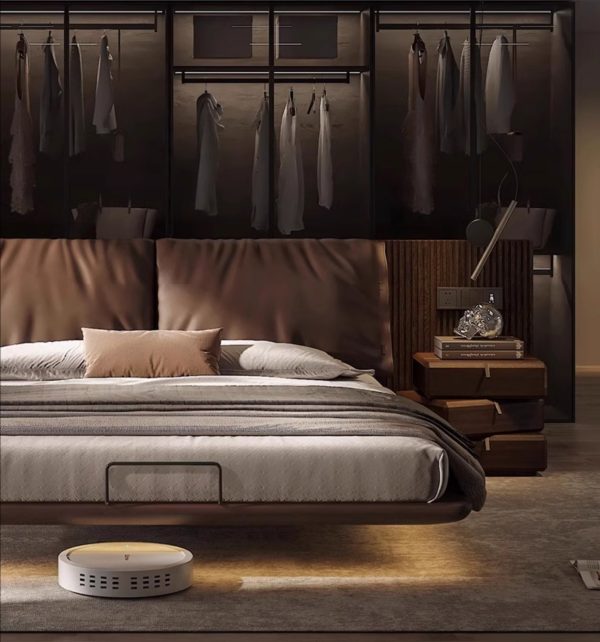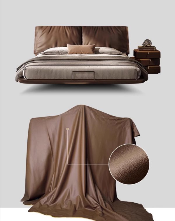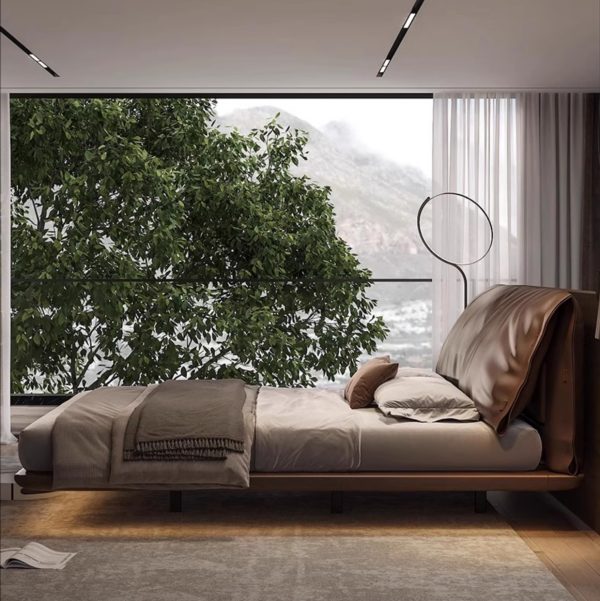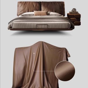 Chiếc giường ngủ da được lấy cảm hứng từ triết lý tối giản đậm chất Ý, nơi mọi đường nét đều được gọt giũa để đạt đến sự cân bằng hoàn hảo giữa thẩm mỹ và công năng. Thiết kế thấp, thanh thoát giúp không gian phòng ngủ trở nên thoáng đãng và hiện đại, tạo cảm giác thư thái tuyệt đối.