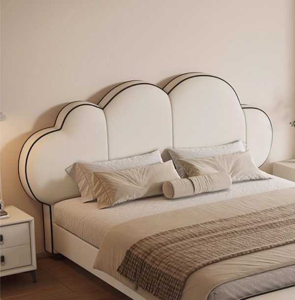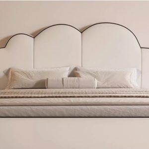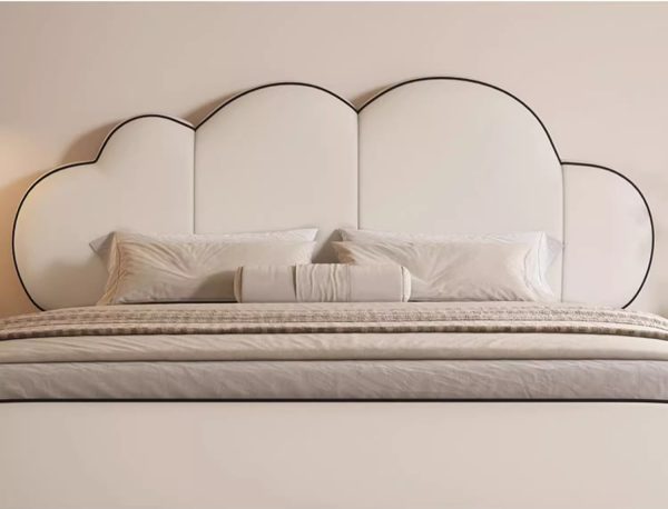 Phần đầu giường được thiết kế theo khối hình uốn lượn độc đáo, tạo điểm nhấn nghệ thuật đầy tinh tế. Không chỉ có tính thẩm mỹ cao, thiết kế này còn mang đến trải nghiệm thư giãn thoải mái, hỗ trợ lưng và vai khi ngồi tựa đọc sách hay xem phim.