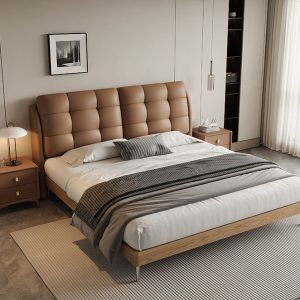 Giường ngủ sử dụng chất liệu da sinh thái cao cấp, vừa tạo cảm giác êm ái khi chạm vào, vừa an toàn và thân thiện với môi trường. Kết hợp cùng khung gỗ nguyên khối chắc chắn, chiếc giường không chỉ đẹp mà còn mang đến sự ổn định và độ bền vượt trội theo thời gian.