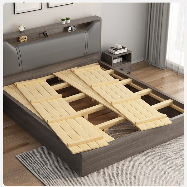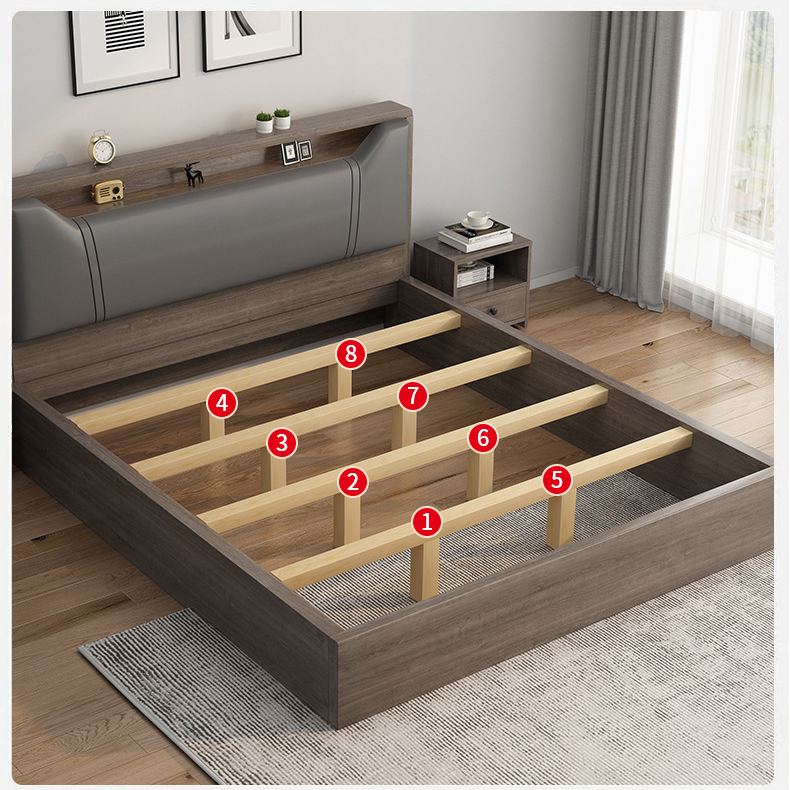 Khung giường ngủ hiện đại cao cấp sử dụng gỗ ván dăm dày dặn, được lắp ghép chắc chắn, đảm bảo khả năng chịu lực vượt trội. Ngoài ra, cấu trúc thông minh còn giúp giường có độ thoáng khí tốt, chống ẩm mốc, kéo dài tuổi thọ sử dụng.