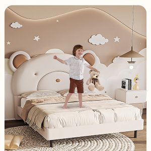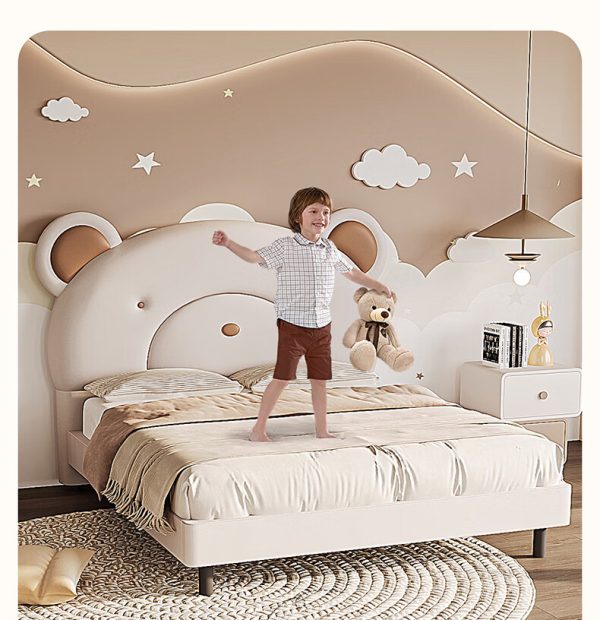 Chiếc giường ngủ mang hình dáng chú gấu ngộ nghĩnh, vừa đáng yêu vừa độc đáo, biến không gian nghỉ ngơi trở nên gần gũi, ấm áp và đầy cảm hứng. Thiết kế tối giản nhưng vẫn tạo điểm nhấn nổi bật, phù hợp với cả trẻ em lẫn người lớn yêu thích sự dễ thương, khác biệt.