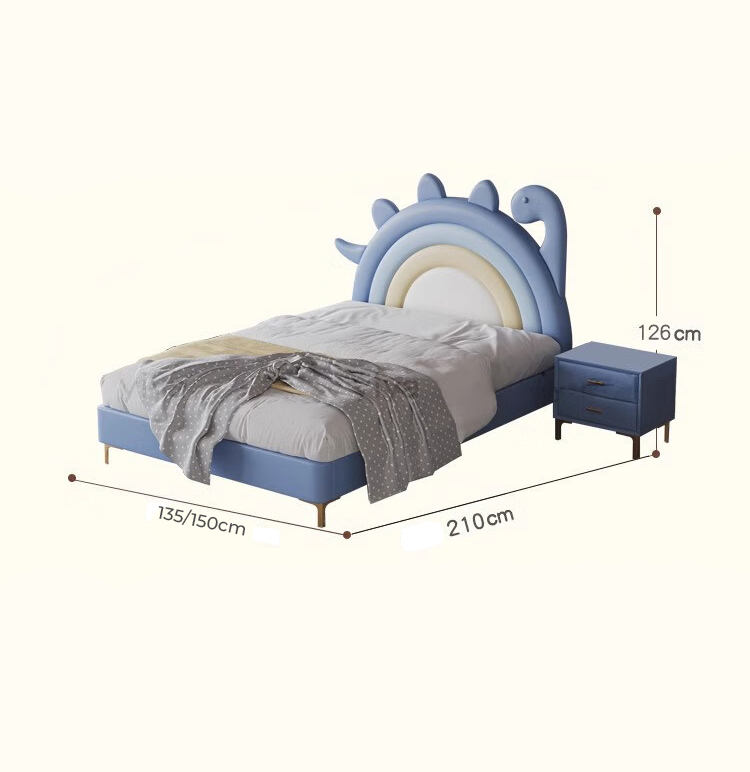 Giường được chế tác từ chất liệu cao cấp, an toàn cho sức khỏe trẻ nhỏ. Khung giường chắc chắn, lớp bọc mềm mại tạo cảm giác êm ái và thoải mái. Ngoài ra, thiết kế tiện ích còn giúp bé có không gian nghỉ ngơi, vui chơi và sáng tạo riêng biệt.