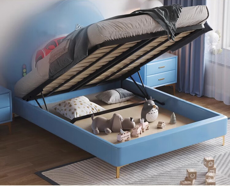 Phía dưới chiếc giường ngủ hiện đại có ngăn kéo, giúp tiết kiệm diện tích và tạo thói quen gọn gàng cho trẻ. Ba mẹ có thể tận dụng để lưu trữ chăn, gối, đồ chơi hay vật dụng cá nhân một cách thuận tiện.
