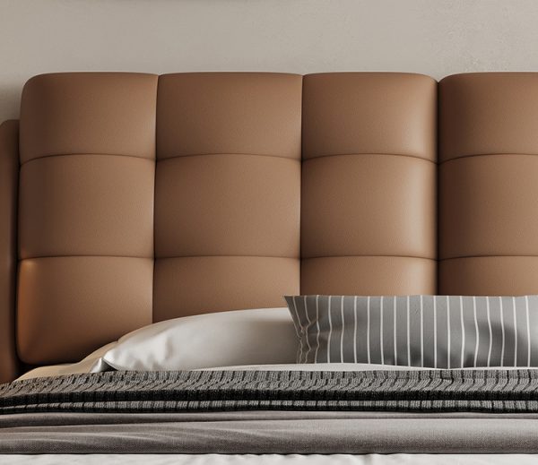 - Da bọc toàn bộ đầu giường, tựa lưng và các mặt bên, tạo sự liền mạch và sang trọng từ mọi góc nhìn.