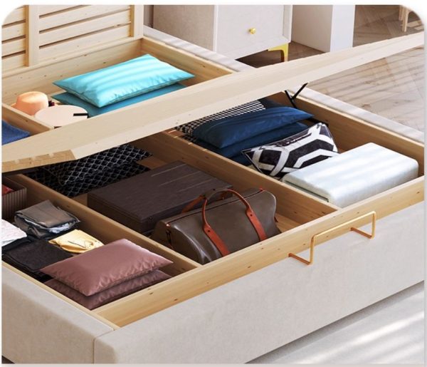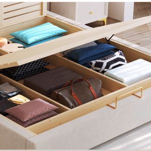 - Hộc chứa đồ dưới nệm: Trang bị hệ thống piston thủy lực nâng hạ nhẹ nhàng, giúp cất giữ đồ ít dùng tới mà không tốn công sức.