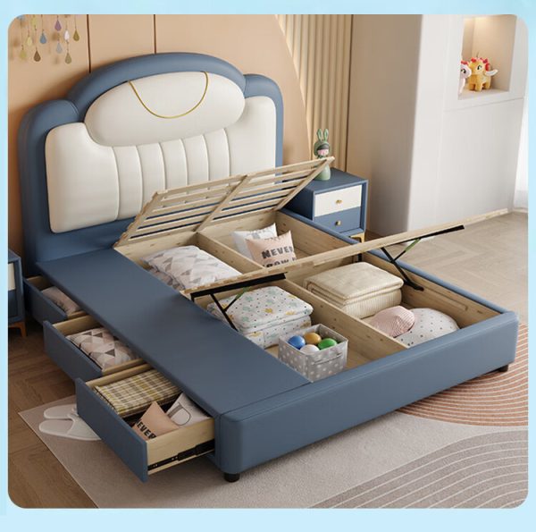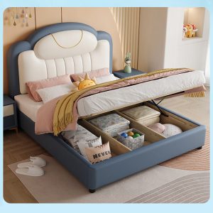- Hộc chứa đồ ẩn dưới mặt giường: Sử dụng cơ chế piston thủy lực nâng hạ nhẹ nhàng, cho phép bạn cất giữ đồ dùng ít dùng tới mà không tốn công sức.