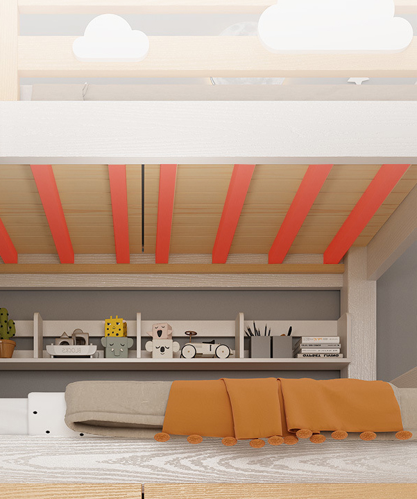 - Giường ODGN50 được tích hợp kệ sách tiện lợi, đặt ngay trong tầm tay bé.