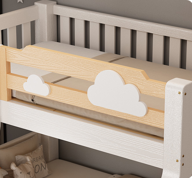 - Lan can giường được thiết kế cao và chắc chắn,hạn chế tối đa nguy cơ té ngã khi bé ngủ.