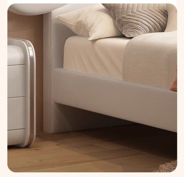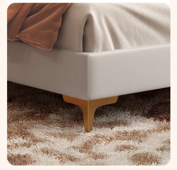 - Giường được bọc da cao cấp, mang lại cảm giác êm ái khi chạm vào và dễ dàng vệ sinh hằng ngày.