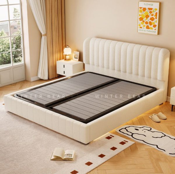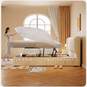 Phần không gian dưới nệm được thiết kế dạng hộc ẩn rộng rãi, dễ dàng nâng lên hoặc kéo mở. Đây là nơi lý tưởng để cất giữ chăn ga, gối dự phòng hay những món đồ ít sử dụng, giúp tiết kiệm diện tích và tối ưu hóa không gian phòng ngủ.