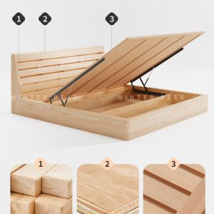 Khung giường được làm từ gỗ thông bền bỉ, có khả năng chịu lực tốt và duy trì độ ổn định lâu dài. Cấu trúc chặt chẽ giúp giường luôn vững vàng, mang đến giấc ngủ an tâm và trọn vẹn.