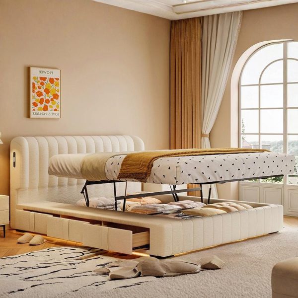 Được trang bị hệ thống đèn LED tinh tế, giường tạo nên không gian nghỉ ngơi ấm áp và dễ chịu. Ánh sáng dịu nhẹ giúp bạn thư giãn hơn, đồng thời tăng thêm sự hiện đại và sang trọng cho phòng ngủ.