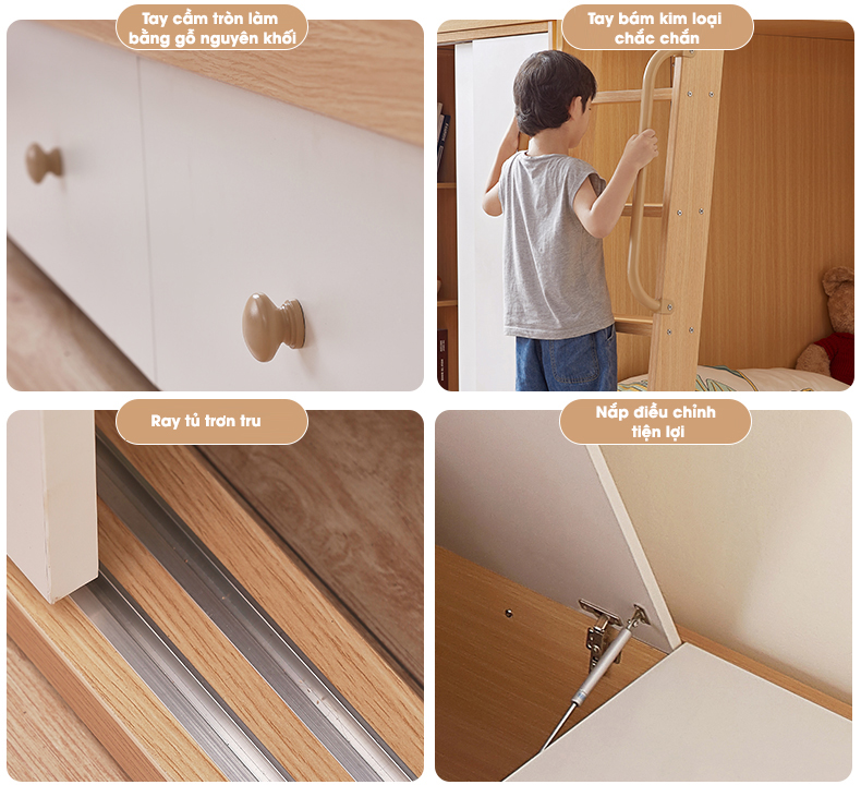 - Bề mặt phủ sơn an toàn, không mùi, không chứa chất độc hại, phù hợp sử dụng lâu dài trong phòng ngủ trẻ em.