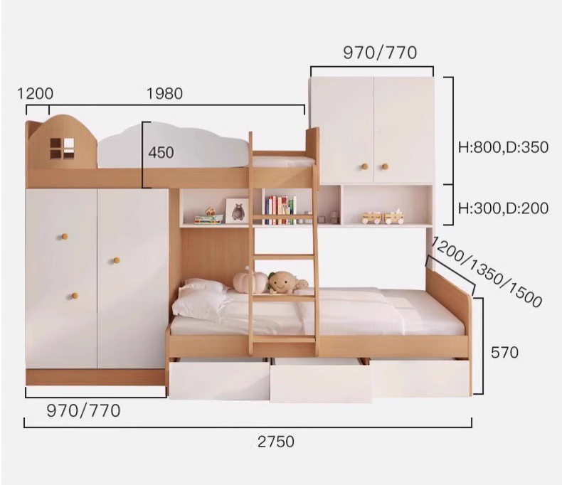 - Không gian nằm thoải mái giúp bé dễ dàng lên xuống, đồng thời thuận tiện cho phụ huynh khi thay chăn ga, vệ sinh giường.
