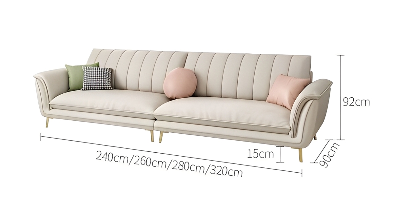 Chân sofa bằng kim loại cứng cáp, mạ vàng chống gỉ, vừa chắc chắn vừa trở thành điểm nhấn lôi cuốn cho diện mạo tổng thể.