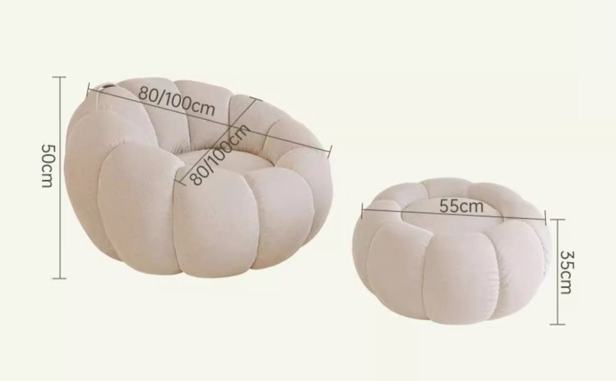 Mẫu ghế sofa đơn tròn sở hữu thiết kế mô phỏng quả bí ngô, tạo nên sự độc đáo và ấn tượng cho không gian bày trí.
