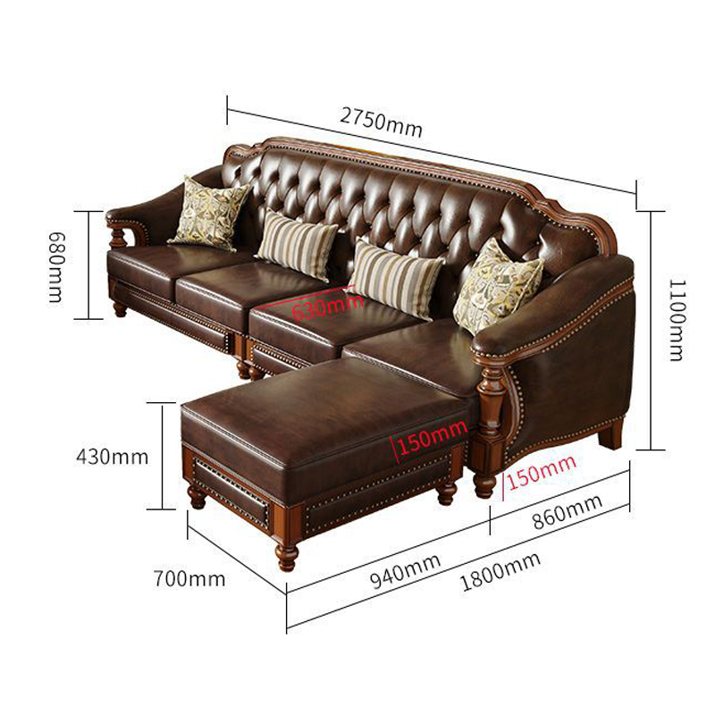 Bảng thông số chi tiết về ghế sofa da ERICA – SD338 phong cách Retro