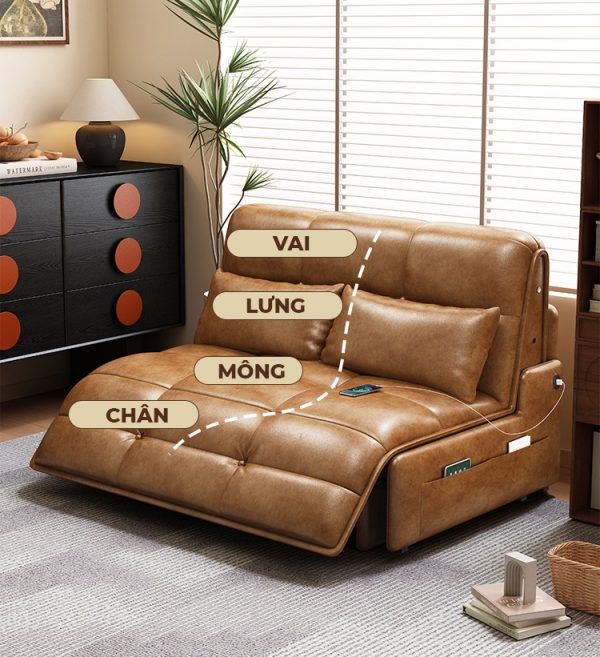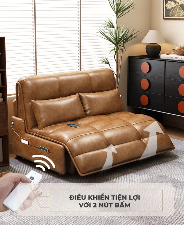 Sofa được tích hợp hệ thống tùy chỉnh điện hiện đại, cho phép bạn chuyển đổi giữa các chế độ chỉ bằng điều khiển từ xa thông minh. Cơ chế vận hành êm ái, trơn tru giúp việc cất giữ trở nên nhẹ nhàng và tiện lợi, mang đến trải nghiệm sử dụng sang trọng, đậm chất công nghệ.