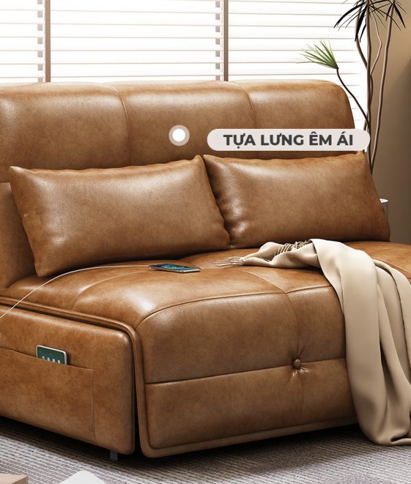 Phần tựa lưng được thiết kế theo chuẩn công thái học, ôm sát đường cong tự nhiên của lưng người dùng, hỗ trợ giảm áp lực lên cột sống, giúp xua tan mệt mỏi sau một ngày dài. Dù bạn ngồi đọc sách, xem phim hay nằm nghỉ ngắn, sofa vẫn mang lại sự thoải mái tuyệt đối và tư thế chuẩn khoa học.