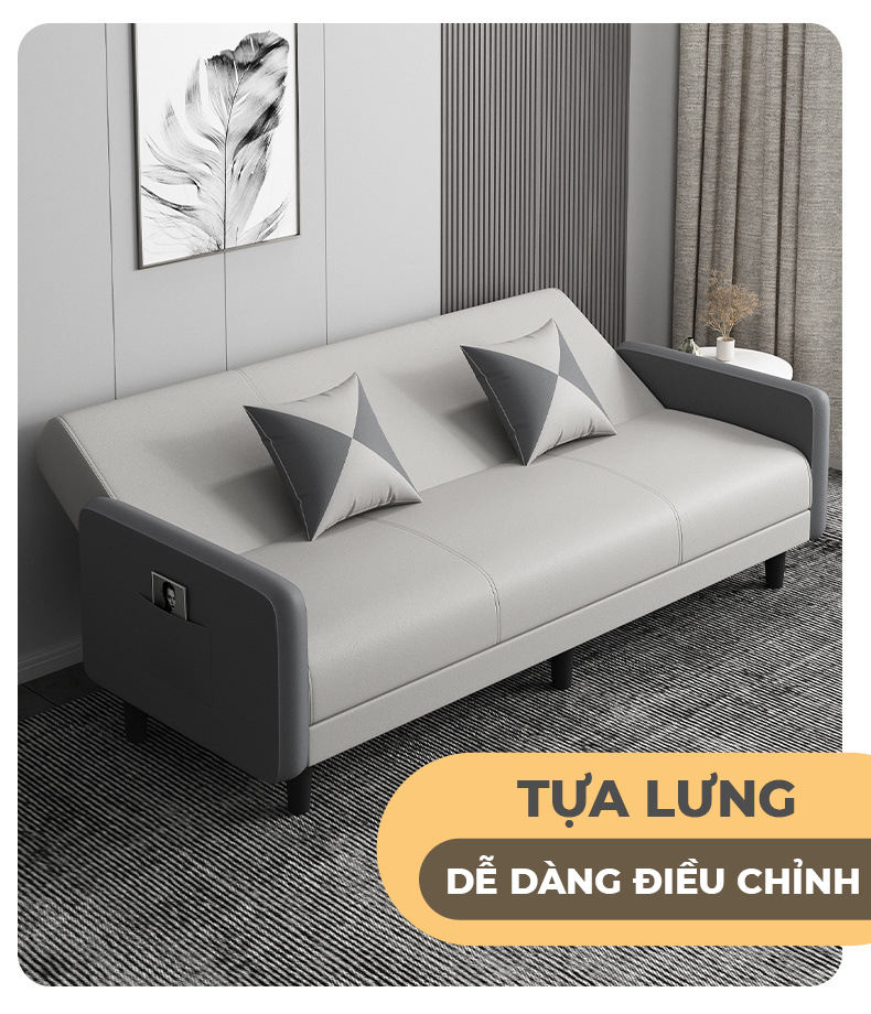 Khung sofa được chế tác từ gỗ tự nhiên chắc chắn, đảm bảo độ ổn định và tuổi thọ lâu dài. Lớp vải bọc công nghệ tiên tiến giúp chống thấm, chống bám bẩn và dễ dàng vệ sinh, giữ cho sản phẩm luôn như mới. Phần đệm mút bọt biển cao cấp mang lại cảm giác êm ái, đàn hồi tốt và hỗ trợ cơ thể tối ưu trong mọi tư thế ngồi hay nằm.
