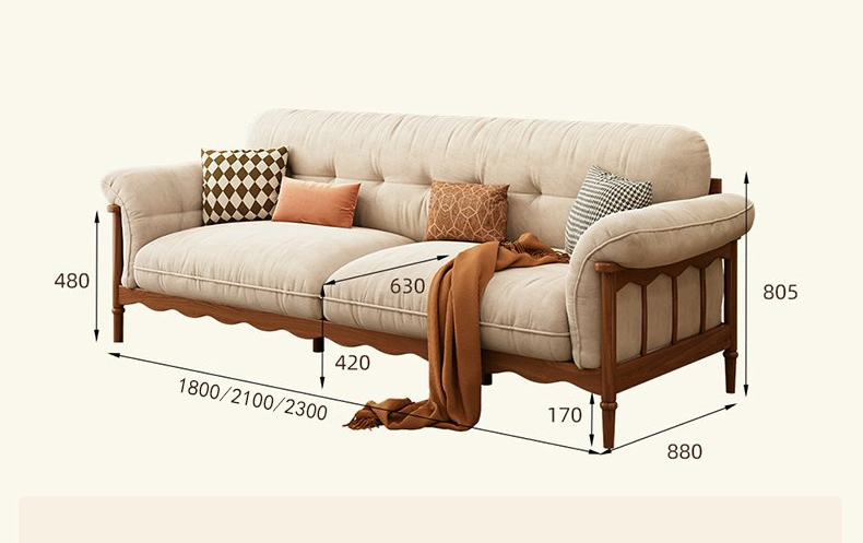 Sofa khung gỗ hoàng dương màu trà cổ điển được tuyển chọn kỹ lưỡng, nhập khẩu từ Bắc Mỹ. Kết cấu gỗ mỏng mịn, vân gỗ phù hợp với phong cách cổ điển, màu sắc gỗ tự nhiên ấm áp, mang đến vẻ ngoài đơn giản nhưng cũng rất sang trọng.